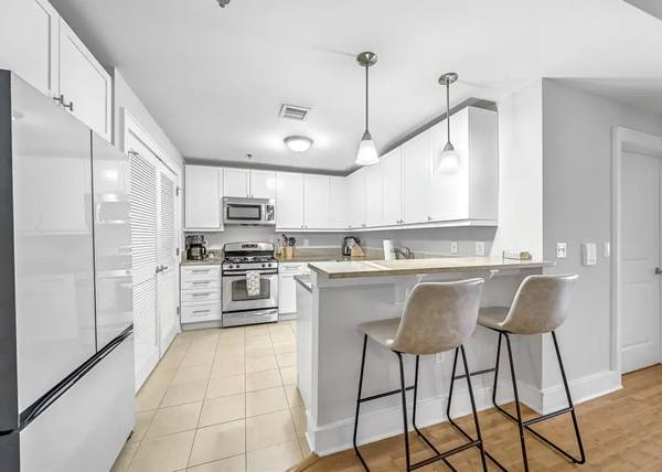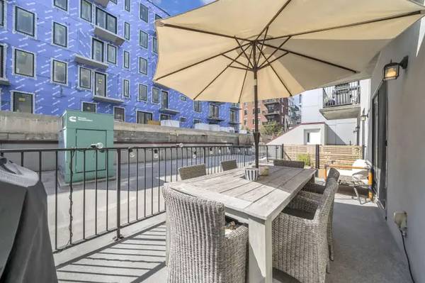 Welcome to this beautifully maintained 800 sq ft home in the heart of Hoboken that checks all the boxes. . The home features an engineered flooring throughout, stylish kitchen with white cabinetry, granite countertops, stainless steel appliances, with a brand new Samsung Bespoke Fridge w/ autofill picher. Kitchen also adds a convenient breakfast bar for more seating and dining options. The spacious living room which seamlessly converts into a den or home office is filled with natural light and offers direct access to your private terraces with plenty of space to dine and relax. Just off the main living area, the bedroom offers excellent closet space and plenty of room to unwind. Additional highlights include newer Samsung washer and dryer, ample storage, deeded parking, and elevator access in the building. Ideally located near the Light Rail, PATH, and bus lines for quick commuting to NYC, as well as close to parks, shops, and dining.