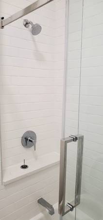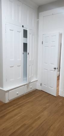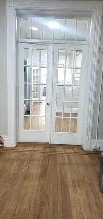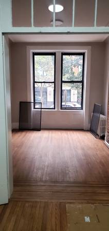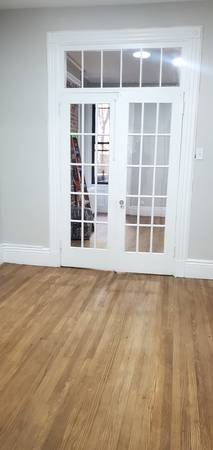 Large updated Railroad style apartment with hardwood floors, French doors, High ceilings, exposed brick, New Kitchen with quartz countertops, DW, Fridge, and Microwave Stainless steel appliances, updated bath with full tub, subway tiles, exposed brick in living room measurements:158in x 154in