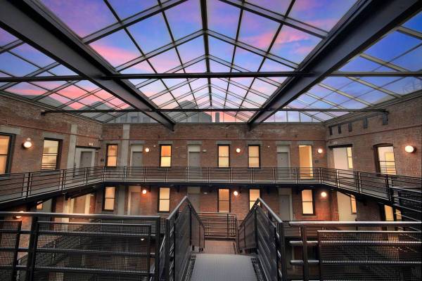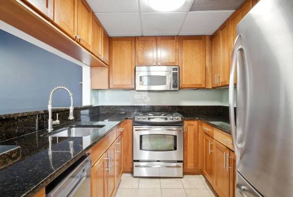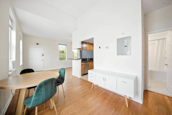 Set in a historic building, this unit blends industrial charm with modern comfort featuring high ceilings, large windows, and gorgeous views of the city skyline. Inside, the spacious layout offers a living/kitchen combo with a dedicated dining area, ideal for entertaining or relaxing at home. The modern kitchen boasts stainless steel appliances, granite countertops, and ample cabinetry. The oversized bedroom comfortably fits a king-size bed and offers plenty of closet space, while the bathroom includes a deep soaker tub and sleek, updated finishes.