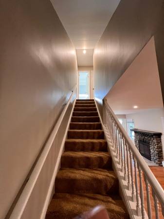 Renovated throughout, it features new hardwood floors, an inviting living room with a fireplace, and a modern kitchen with new appliances.