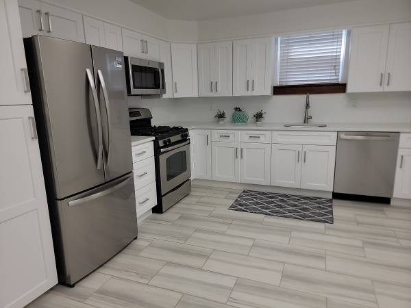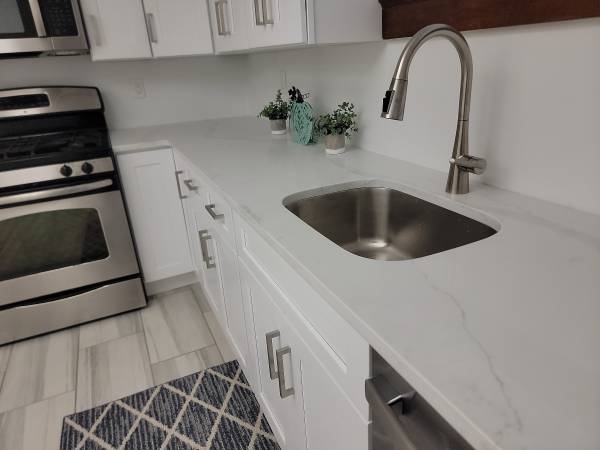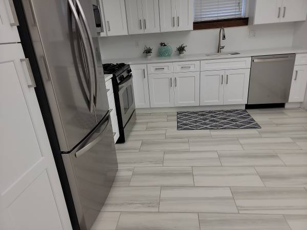 * Beautiful Spacious Modern Eat-in-kitchen. Stylish countertop and kitchen floor. Stainless Steel Appliances