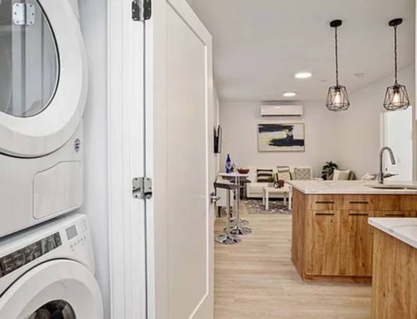 • In-unit washer & dryer (stacked Whirlpool appliances) for total convenience