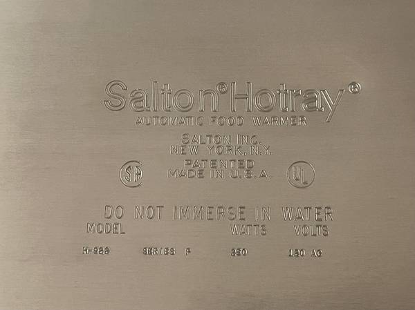 Vintage Salton Model H922 Special Hotray Automatic Food Warmer