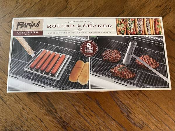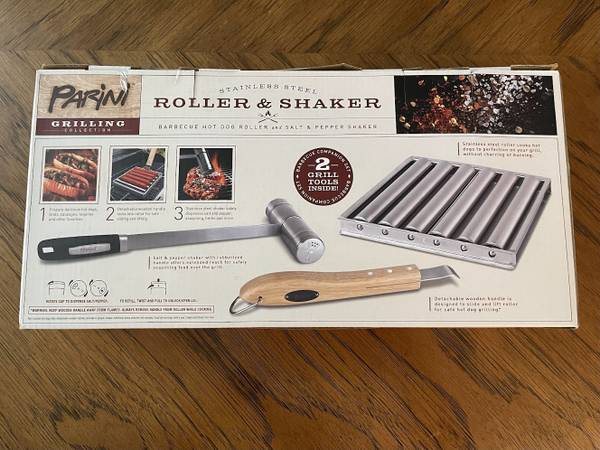 New Parini Roller & Shaker - Grill Tools - Barbecue Hotdog Roller and Salt and Pepper Shaker