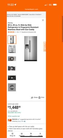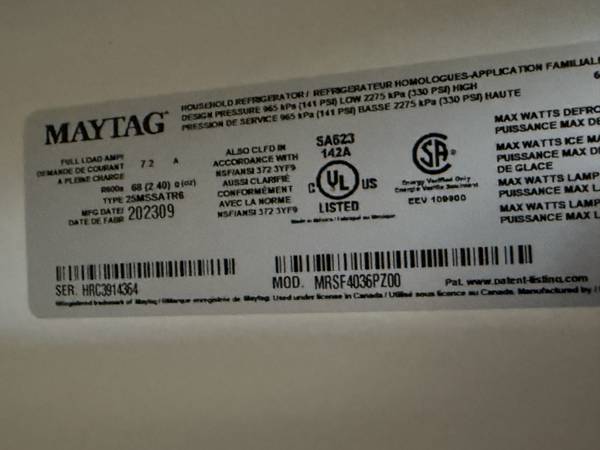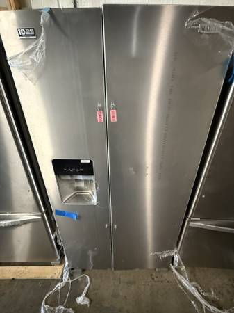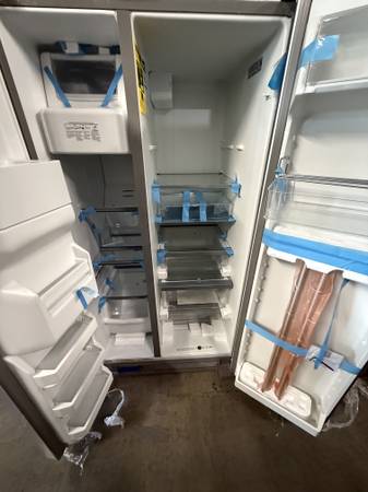 Selling my Maytag New Stainless Steel Side by Side Fridge with Ice and Water Maker: Height is 69” Inch & 28” Inch Depth without Doors. Has Manufactured Warranty. Has tiny tiny scuff/Ding. Still Looks Great. Asking $1,200 Cash. We Can Deliver. ********** Call or Text Me show contact info