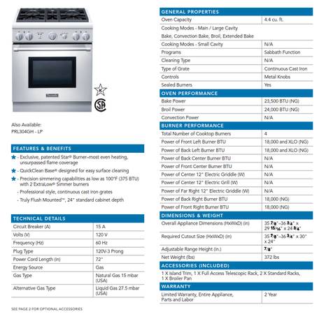 Part number PRG304GH, 4.4 Cu. Ft, stainless housing, cast iron grates Retails for approx $3800 Excellent condition, minor wear, otherwise functions perfectly.
