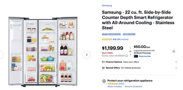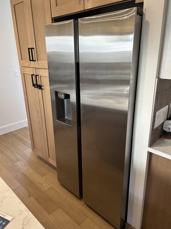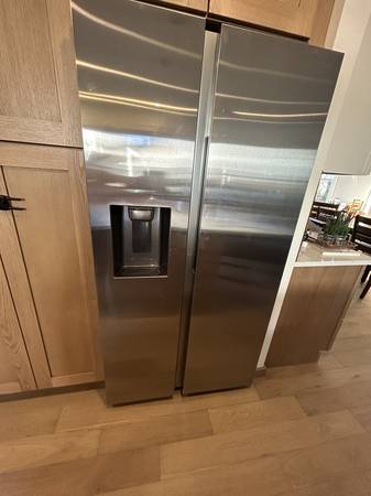 Only been used for 3 weeks. We moved into a fully renovated home with brand new appliances 3 weeks ago, one of which is this fridge. We highly prefer the top/bottom fridges so we're replacing this one to better fit our needs.