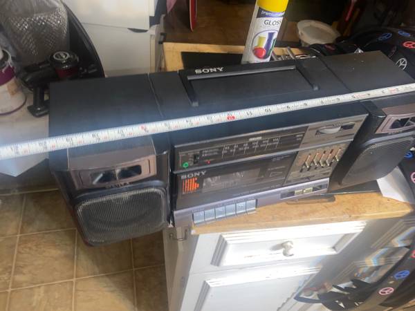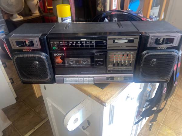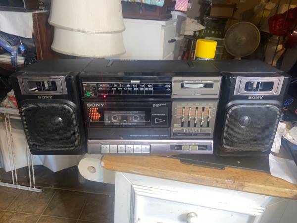 This is a vintage from the 1980s FM and Am stereo cassette corder player. This plays the radio of course and you can ply cassettes on it and both have best tested and used by me before listing this. I don't mind keeping it if it don't sell. I don't have any other cassette players from my childhood. But I put pictures from all sides and angles. Speakers work great and goes loud to me. I have this running on 6-8 double D batteries when I use it for posting. It is missing the cord if you don't want to use batteries which costs 6-8 dollars on eBay. If it don't sell I'll buy that for myself if I keep it. But batteries work great. Email or text with any questions.