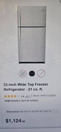 Whirlpool 21cu.ft. refrigerator/freezer in good condition priced to sell. Tenants moved out and must sell quickly. Delivery available for extra fee.
