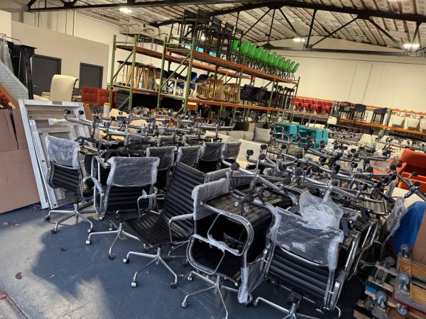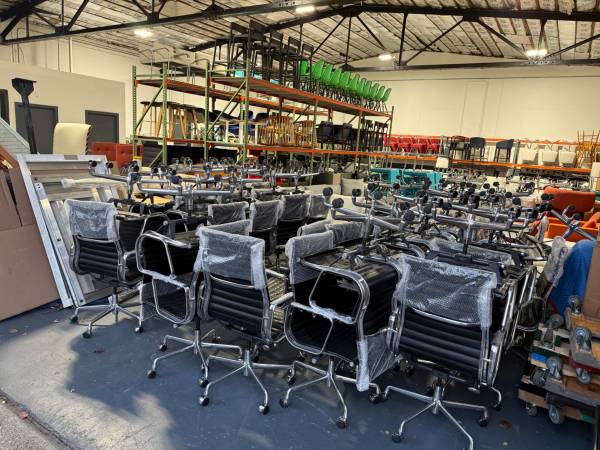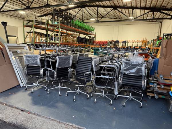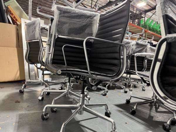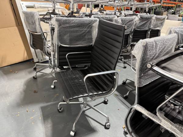 We have a large quantity available. Approx 50 chairs. Black leather, high back, authentic Herman Miller Eames executive high back aluminum task chairs. All in very good condition. Selling for $700 EA. Pick up from our warehouse in Saddle Brook, NJ. Please email me if you have any questions. Thank you.