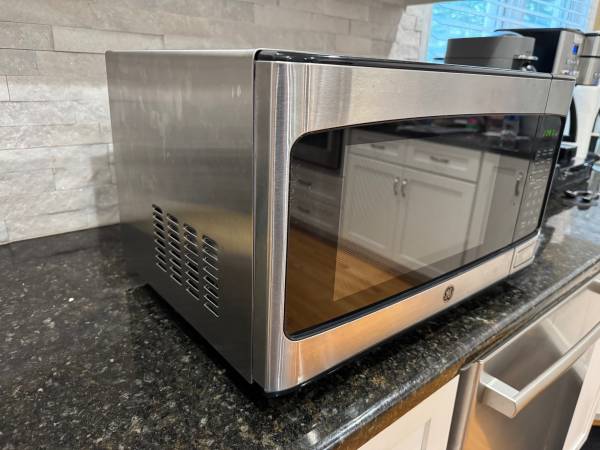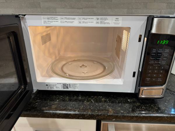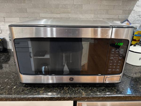 Selling a 950W countertop GE Microwave, with turntable and interior light, stainless steel, no issues, minor scrapes/scratches in stainless steel on top as pictured. Asking $50 obo.