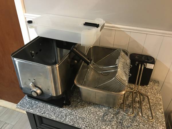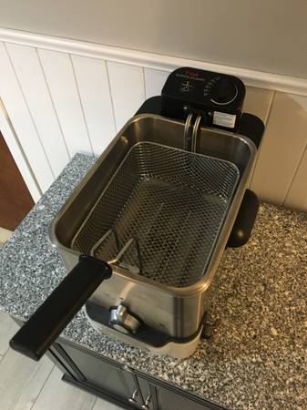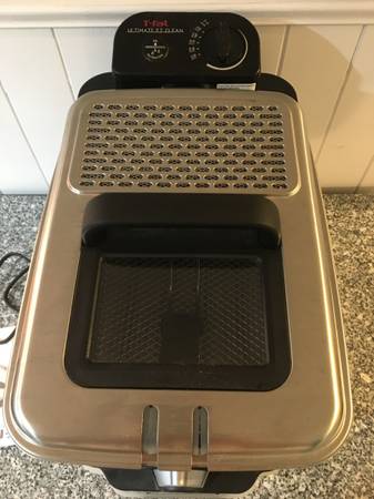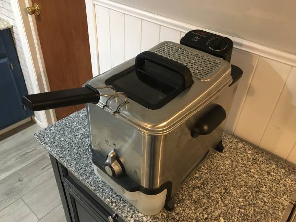 T-fal 3.5L Stainless Steel Deep Fryer with Basket, 1700W, Oil Filtration, Temp Control, Digital Timer, Dishwasher Safe Parts. Sells for $120 on Amazon. Used only once. Dimensions 18.3"D x 13.7"W x 14.8"H