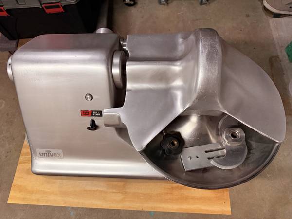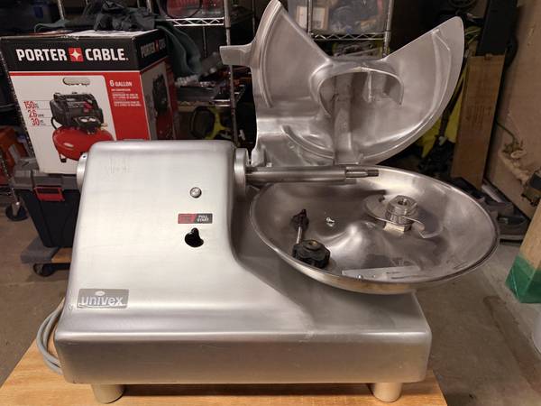 For sale is this Univex buffalo chopper. It is a commercial unit but 110v so no dedicated circuit needed. The unit is clean and runs well. The bowl is 14". So no trouble blowing through piles of vegetables or beef, pork or chicken. This unit does an amazing job chopping meat for sausage without generating any heat to degrade your sausage mixture. This can even almost puree meat if you're making homemade Bologna or Spam. You will love this unit. only serious inquiries. *All sales final. As-Is, No returns*