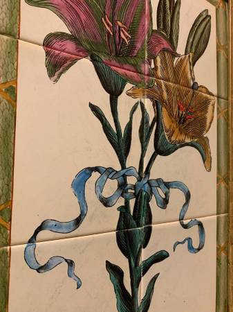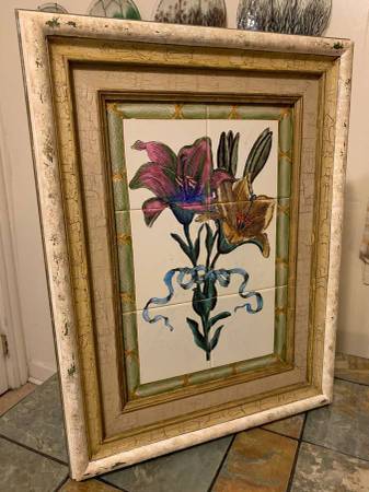 Framed Modern Floral / Flower Tile Mosaic Painting by John Richard ($350)