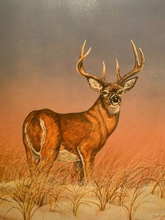 original Jim Tostrud art canvas lithograph deer stag buck wildlife - $125 (Essex / Caldwell)