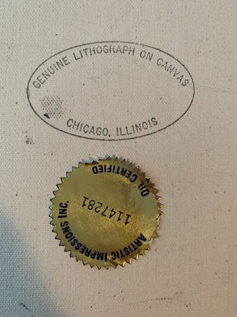 Oil certified lithograph on canvas in a wood frame picturing a deer/stag/buck wildlife nature scene.