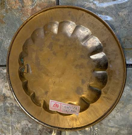 vintage Poompuhar Indian Folk Art Decorative Peacock Brass Plate ($40)