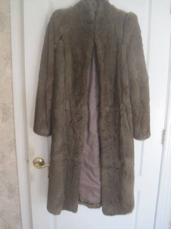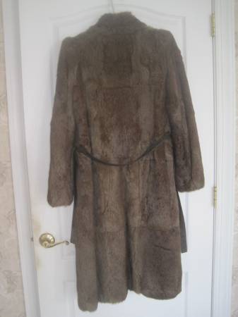 Ladies Fur Coat Size Small. Brown with fur hooks and belt. Coat in good condition however has TEAR at right shoulder. Selling AS IS. Can possibly be repaired or fur used for sewing & craft...
