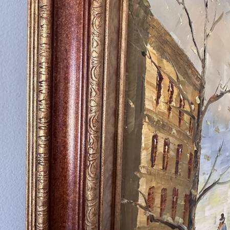 Signed Oil On Canvas Framed MCM City Scene Flower Store - $200 (Clark)