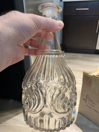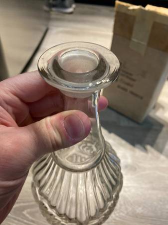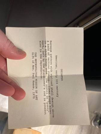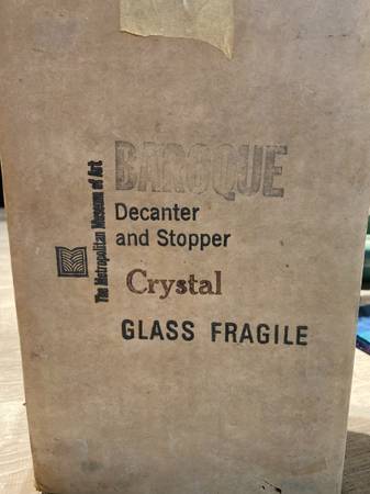 Beautiful Metropolitan Museum Of Art (MMA) Reproduction Sandwich Glass Decanter With Stopper Measures about 11” tall. Style: Baroque, Early American Hand made, never used