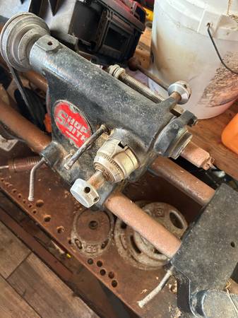 It works on wood — currently set up in lathe mode (turning wood, shaping handles, bowls, etc.).