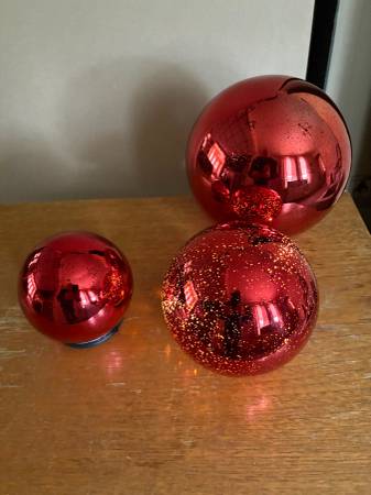 Brand New - Set of 3 Mercury Glass LED Illuminated Holiday or Decorative Spheres Indoor / Outdoor Timer switch which allows 6 hours on and 18 hours off ( see details attached ) Color: Burgundy...