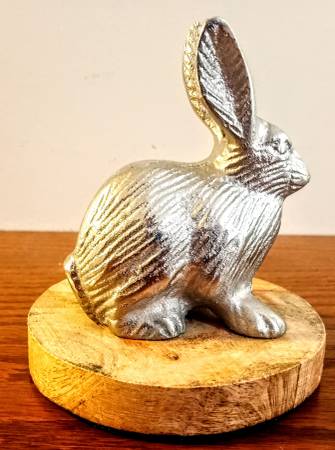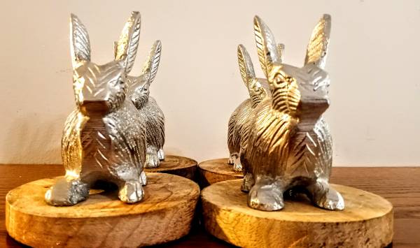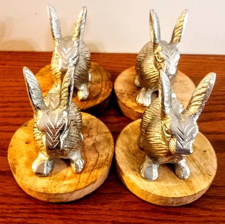 Easter Rabbits Decorations Handcrafted Set - 4 Paperweights Silver Color Each 5"