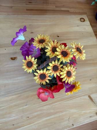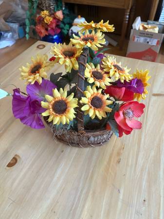 Artificial flower arrangement in a basket