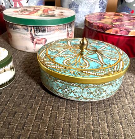 Baking Season is just starting Holiday Tins are in great shape Tins are clean without any dents Used for storing cookies during the large Christmas cookie baking done Total of 13 The X-Large tins...