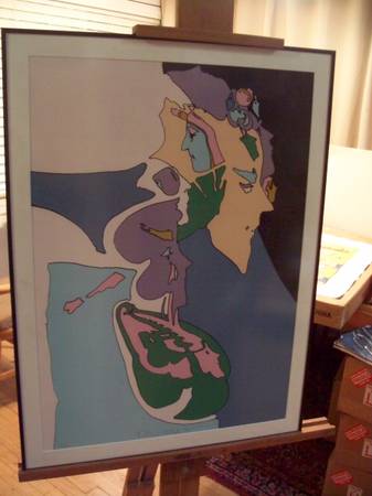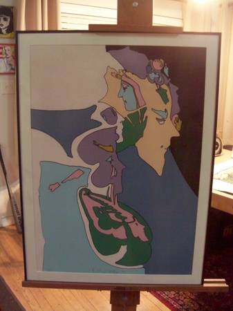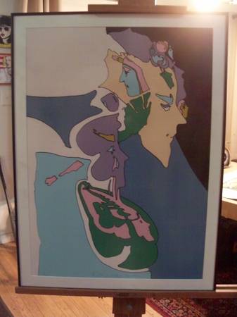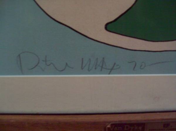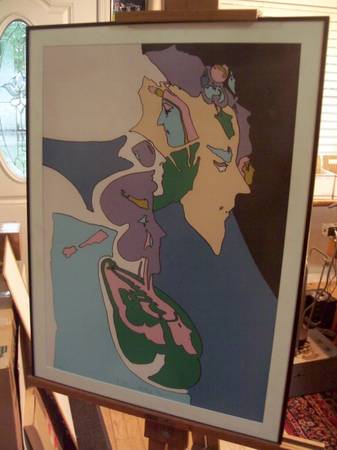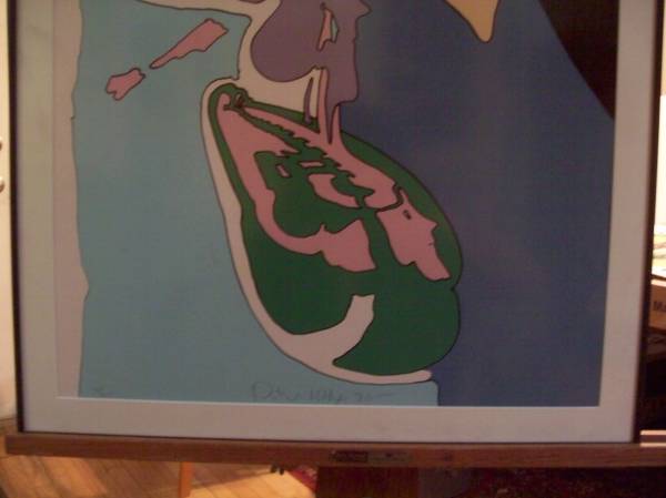 Listed for sale is this 1970 serigraph by artist Peter Max "Glimpse Into Akashic Records", number 49/100, pencil numbered and signed, in very good condition. Framed under conservation matte plexiglass in an aluminum frame the framed size is 22-5/8" x 30-1/2". The colors are brilliant - I couldn't use my camera's flash due to glare. What makes this unique is that Max signed his full (abbreviated) name, "Peter Max", and that later in 1970 as he immersed himself in Eastern religion & philosophy he began to sign his name "Zen Max" which continued until late 1971 - early 1972. This is a classic example of early Max psychedelic art. $1500.00. SERIOUS INQUIRIES ONLY. If the listing is up it's available so don't ask. It's located in Sussex New Jersey not far from the Vernon High School and minutes from the Town of Warwick in New York State.