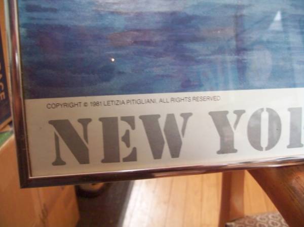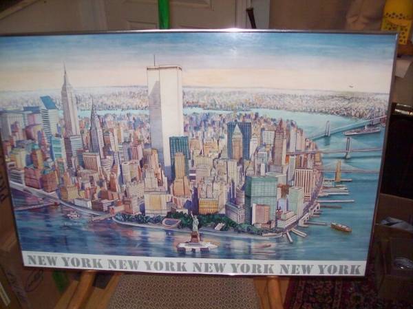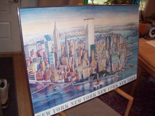 I'm selling a vintage 1981 Vintage Letizia Pitigliani Manhattan New York City NYC World Trade Center Art Print Framed in Good Condition. The clear is glass, and the framed size is 36-1/4" x 24-1/4". The print is in very good condition, and the frame is fine. I can not ship this as it's under glass. CASH payment in full on pick up. If this listing is up it's available so please don"t ask such. It's located not far from the Vernon High School in Sussex County and 3.7 miles in from the New York State border with neighboring Pine Island 10969