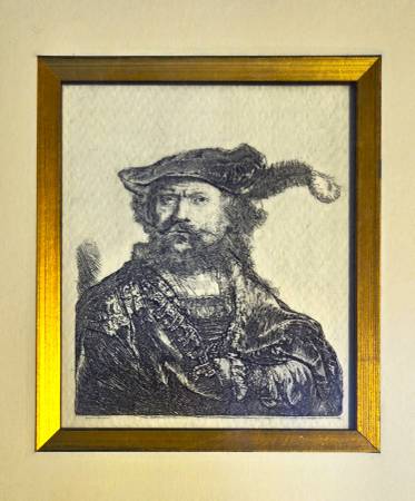 This is a beautiful etched print of Galileo that has a beautiful wood frame... 20" inches wide by 23" inches high. It is in Excellent condition Cash only please