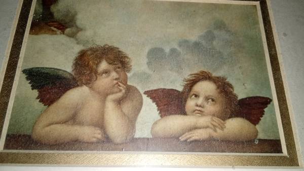 Pick up only PayPal/ cash only "more ads by this user" Known as ‘The Sistine Cherubs’ and ‘Raphael’s Two Putti’. (Putti = cherubim) Raphael’s Angels are seen at the bottom of the “Sistine Madonna“....