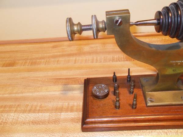 SOLID BRASS MOUNTED ON WALNUT BASE MFG'D BY J M BOTTUM NEW YORK CIRCA 1860 MEASURES 11" LG X 5 1/2" HIGH OWNED FOR 50 YEARS AND USED FOR DISPLAY ONLY CAN MEET ON CLARK EXIT 135 GSP PLEASE RESPOND...