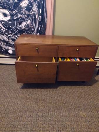 Mid century cabinet In good used good condition Has minor scratches and marks on top. Heavy & sturdy Bring your own help Can be used in home office as file cabinet. Or as tv stand with storage...