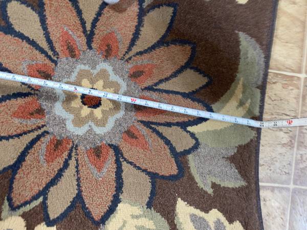 This is a well made indoor area rug by Mohawk homes in chancellor Brown color with flower designs. It's a big area rug measures about 93 by 63 inches which is close to 5-8 foot. You can make this like a carpet in most regular to smaller size bedrooms. It's pretty heavy and don't move easy when on floor.