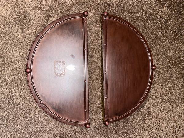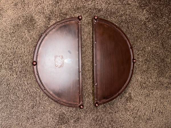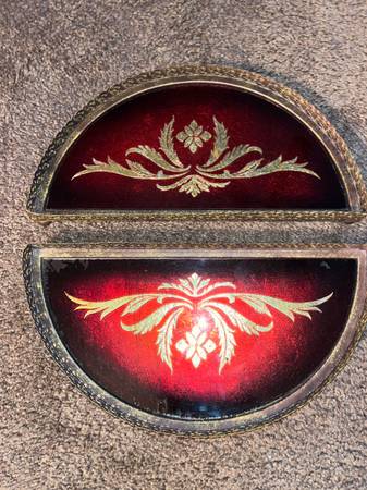 Vintage 2 half circle Red and Gold Foil Art Glass serving trays.