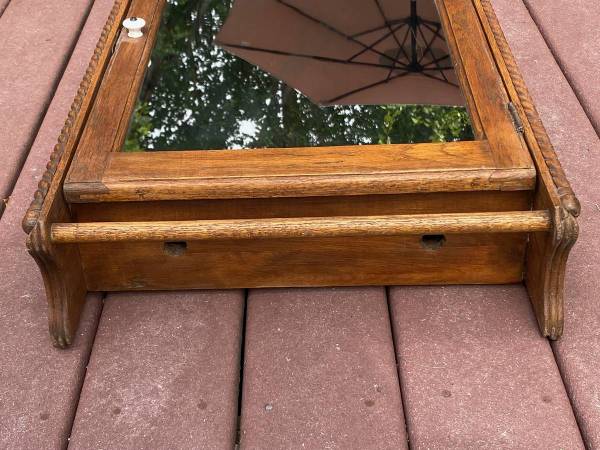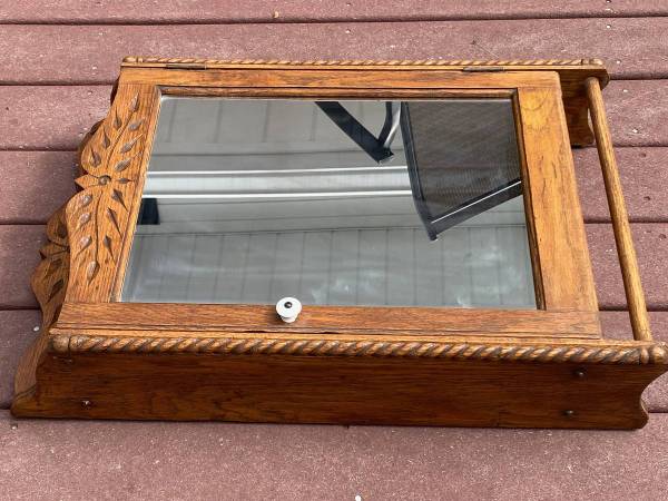 Oak Vanity with Mirror Nice vintage condition 18"w x 6"d x 28"h White porcelain knob Mirror is perfect