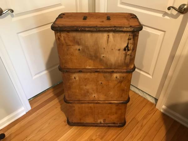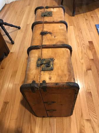 Beautiful decorative travel wooden case. Great patina with ribbed wooden casing wraps and brass corners