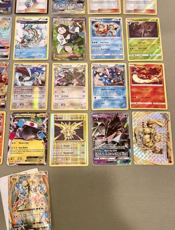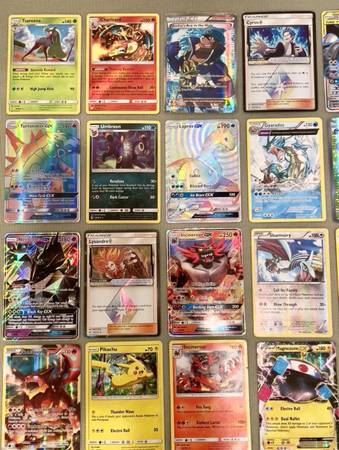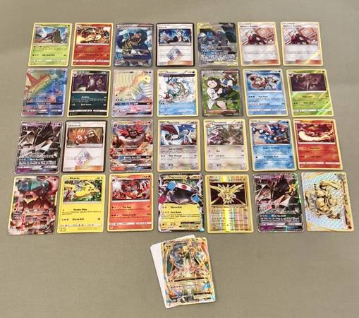 This 29-card lot includes Full Arts, GX, EX, Secret Rares, Prism Stars, and promos—perfect for collectors or resellers! The "M Charizard" is severely damaged but figured it would still be fun to play with.