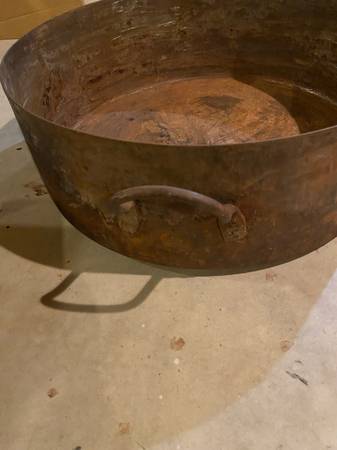 Awesome giant cooking pan 24” across plus handles 8” deep Needs to be cleaned up and most likely retined to use for cooking