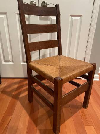 Gustav Stickley Rush Seat Ladder Back Oak Side Dining Chair - $185