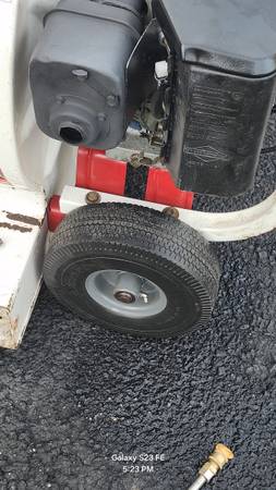 8HP Little wonder blower with 8HP commercial/industrial Briggs engine. New Semi-Pneumatic wheels. New Carb, all new fuel lines, fresh tune up. Just professionally serviced. Runs flawlessly. Completely gone through. Some surface rust on the white parts, other than that like new.