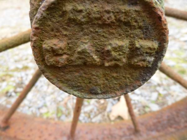 Here is an old Case implement axle, maybe from an old silo blower? What you see is what it is, very rusty, axle is almost rusted through. They are un-useable, not restorable, spokes are almost rusted through, only would be good for yard art. Please don't ask to come see this, be serious, and sure this is what you want. Look close at all the pictures on a full screen and be certain this is what you want to buy and I will go bring this out of the woods for you to pick up.