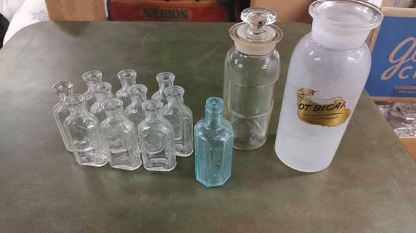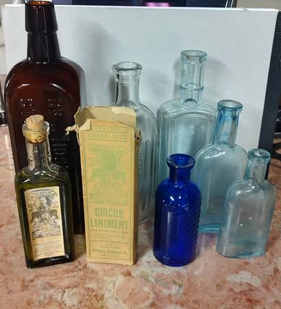 1890s antique bottle lot - cobalt poison, bitters, elixer, apothecary - $150