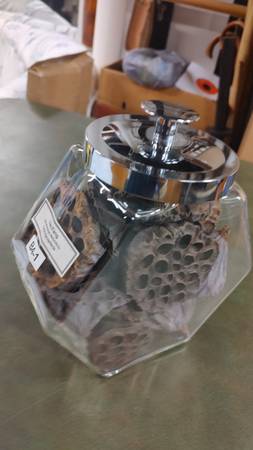 Cool Vintage cookie jar container filled w/Lotus pods - $20