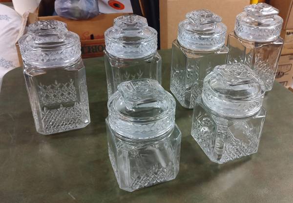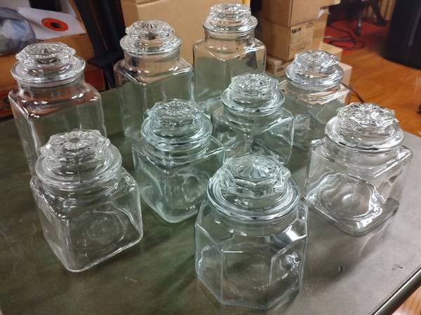 (9) Vintage 1970s glass candy/apothecary jars - $120