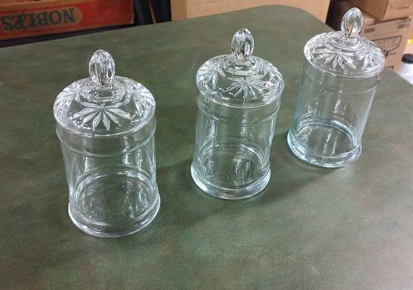 (2) vintage candy apothecary jars w/decorative lids - $30