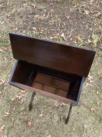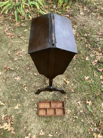 Cabinet is in premier condition considering its age: (1920/s-30's) and is surely functional today. All joinery is tight and sound, No Wobbles. Please note the little tray with compartments is included. Measures 14" wide x 11-1/2" deep x 24" tall plus the 1" handle. Easy Pequannock pickup. Cash or Venmo accepted.