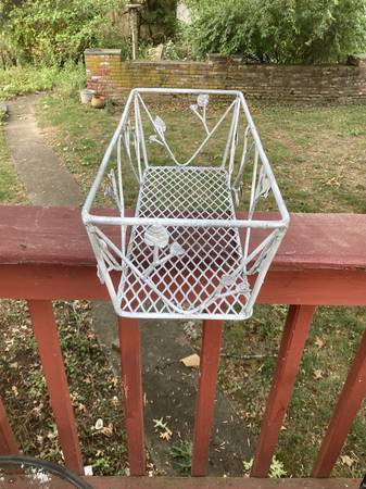 Basket is old, beautiful and functional. Had been used to hold small flower pots. Flower pot liners included. Measures 18" long x 8" wide and is 6" deep. Pequannock pickup.